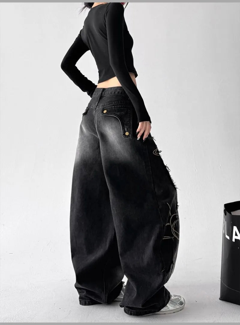 When denim meets dreamscape. The Cosmic Stitch Denim brings a celestial twist to Y2K-inspired streetwear featuring bold frayed seams, hand-drawn star and heart patterns, and an ultra-wide silhouette that moves with attitude. It’s playful, rebellious, and impossible to ignore.